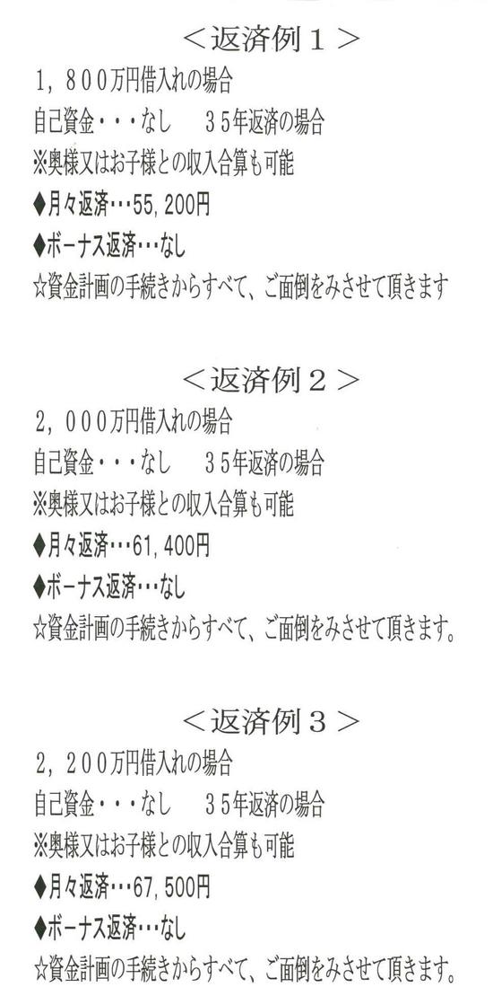 | トップページ | 土地情報 | 新築物件情報  | 建物ラインナップ紹介 | ☆頭金なしのご購入可 | ☆ご購入手続きの流れ | ☆新築住宅の概念